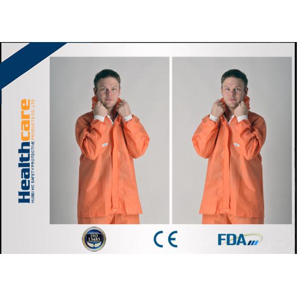 Orange PP/SMS Disposable Protective Coveralls With Elastic Cuff Wrists And Ankles Images |